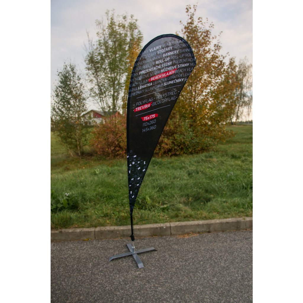 Aby byla beach vlajka kompletní, tedy samostatně vlála, je potřeba ji navléci na stožár a upevnit na jeden z nabízených stojanů.