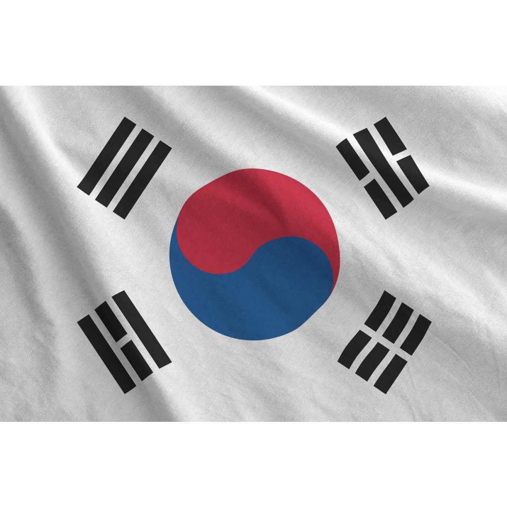 Vlajka Korejské republiky ve standardních rozměrech tištěná na kvalitní PES materiály.